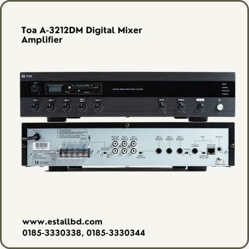 Toa A-3212DM Digital Mixer Amplifier in BangladeshThe Toa A-3212DM Digital Mixer Amplifier with MP3 120W is a versatile and feature-rich option for various sound reinforcement applications. Here's a b..